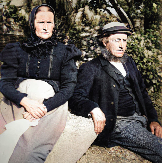 Ledslitaren Jonas August Lidgren (1837-1913) med hustrun Margareta Katrina (1835-1912) utanför sommarbostaden i Brattliden runt år 1900. Den lokale författaren Åke Lundgren är släkt med Lidgren har i sin bok "Kvacksalvarna" skrivit om släktens ledslitare. Bildkälla: Skellefteå museum