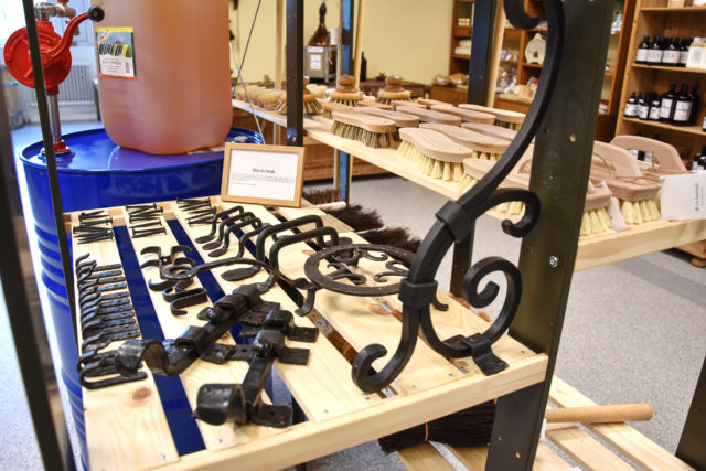 Här finns också tjärprodukter, borstar, ekologisk tvål och deo, smidesgrejer, en del tapeter och annat. Antingen lokalt- eller Sverigetillverkat. Joels sambo kommer från Funäsdalen och där finns Härjedalens Byggnadsvård, en butik som råkade öppna efter att de köpt hus, och där blev paret stammisar.