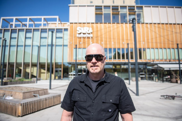Gunnar Karlsson på Saraplatsen framför Sara Kulturhus. Här arrangeras Summertime Garden Party senare i sommar. Foto: Caroline Thorén