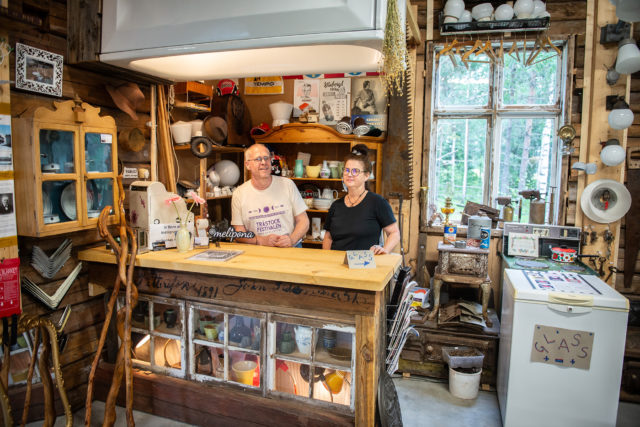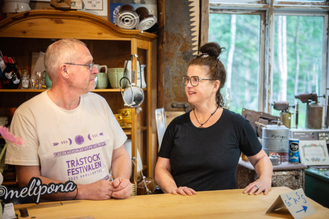 • Johanna Sundin och Robert Lindström öppnade Meliponas magasin för nästan exakt ett år sen. Magasinet stod tidigare i centrala Skellefteå men plockades ner och fick nytt liv i Renbergsvattnet. Foto: Caroline Thorén