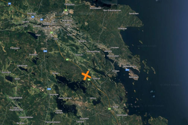 Platsen för den första olyckan, enligt koordinatangivelsen till SOS Alarm. Foto: Google