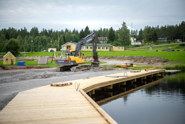 När kaffet är urdrucket och chokladbollen, som visar sig mätta fram till klockan två, är uppäten frågar Lars Martinson om jag vill följa med ned till sågen och titta på de sjöbodar som snart ska placeras vid södra Bygdeträskets strand och som nu håller på att färdigställas.