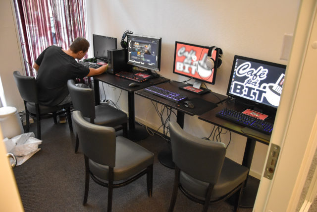 Inne på Café på Bit finns en hel del. Bland annat nördig merch, brädspel, kortspel och tv-spel till en rad generationer konsoler, från de tidiga efter 80-talets tv-spelskrasch till de moderna. Antingen för att spela eller att köpa med sig hem. Det finns en arkadhall med flipperspel, arkadmaskiner och Guitar Hero-hörna, ett sprillans nytt LAN-rum med hittills sex datorer där polare kan lira klassiker som Quake III Arena, med mera.