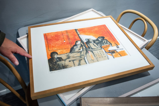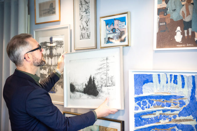 – Efter pandemin renoverade vi och byggde om hela restaurangen. Men en del av restaurangen saknade något som gav lite värme. Då fick jag idén att en del av all den konst vi har skulle kunna användas på ett nytt sätt, säger Martin.