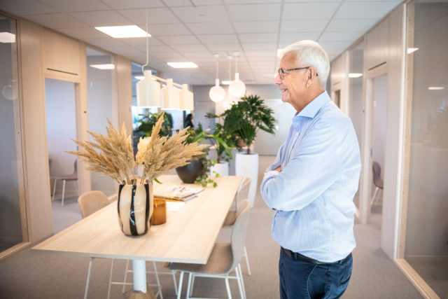 Nordvestor Fastigheters vd Pär Nordlund i de nya lokalerna med ingång från Hörnellgatan. Bolaget startades hösten -96 av honom själv, Anders Westermark och Råland Kågström. I dag spelar han gärna ned sin nuvarande roll i företaget och lyfter de yngre förmågorna. Foto: Magnus Lindkvist