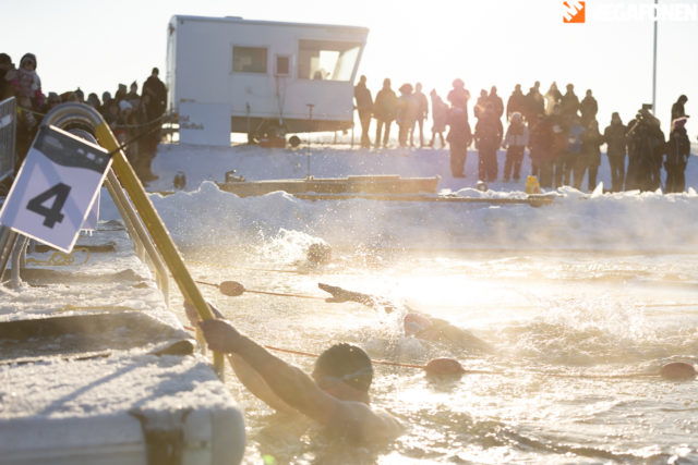 Efter elva genomföranden nedanför Stadsparken i Skellefteå centrum fick det öppna Skandinaviska mästerskapet i vintersim, eller Vintersimmet, flytta ut till Skelleftehamn inför sitt tolfte. Flödet i Skellefteälven har behövt bromsas för att möjliggöra tävlingen och nu var det slut med det, så Kurjovikens marina blev alternativet.