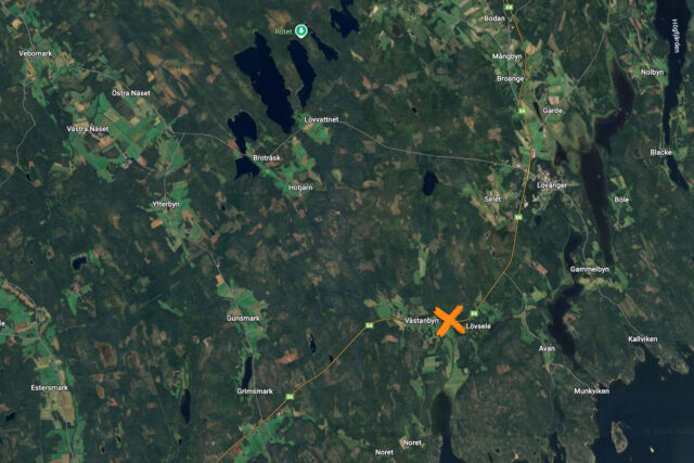 Vid klockan 05.00 på fredagsmorgonen körde en lastbil av E 4 vid Lövsele och chauffören fördes till sjukvård för kontroll. Polisen misstänker inget brott i samband med avåkningen.