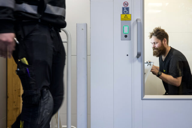 Robert Abrahamsson öppnar porten och kliver in i hiss-specialisten Nelabs lokaler på Solbacken i Skellefteå. Han är platschef på stället och möter upp med kollegorna Stefan Lundström och Edwin Jonsson som är fullt upptagna med att inspektera innehållet i en låda vars innehåll ser mycket spännande ut för ett otränat öga. Sladdar och knappar och delar av olika slag som skickar en tydlig signal: låt proffsen greja med det här. Försök inte ens.