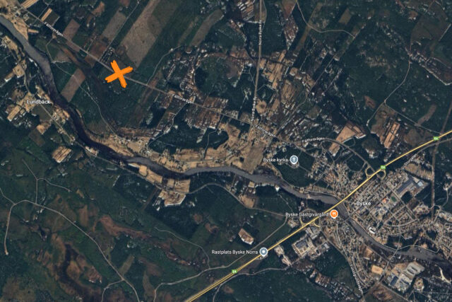 Enligt koordinatangivelsen till SOS ska avåkningen ha skett här. Foto: Google
