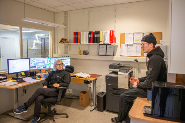 Mari Sjöstedt och Emil Hedlund jobbar på krematoriet i Skellefteå. Det är ett jobb som kräver tekniskt kunnande, mycket administration och förmågan att möta människor i sorg. Foto: Caroline Thorén
