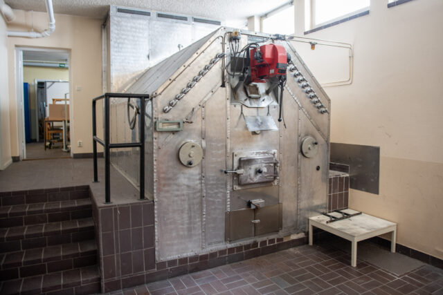 • I källaren ligger det gamla krematoriet som togs i bruk 1961. Det nuvarande krematoriet stod klart 2013. Upptagningsområdet är hela norra Västerbotten. Foto: Caroline Thorén