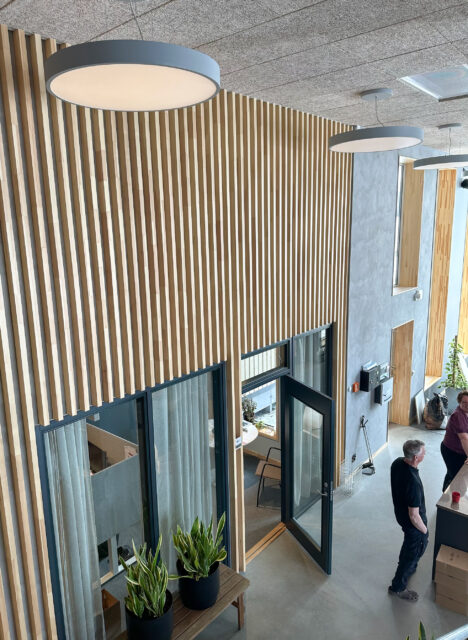 Utformningen planerades länge och i det arbetet har arkitekten Isabelle Gyllengahm Flimel varit till stor hjälp. Till exempel har fikarum och mötesplats placerats i fabrikens mitt, så att medarbetarna får nära till varandra, och i dag har de även tillgång till padelbana och gym.