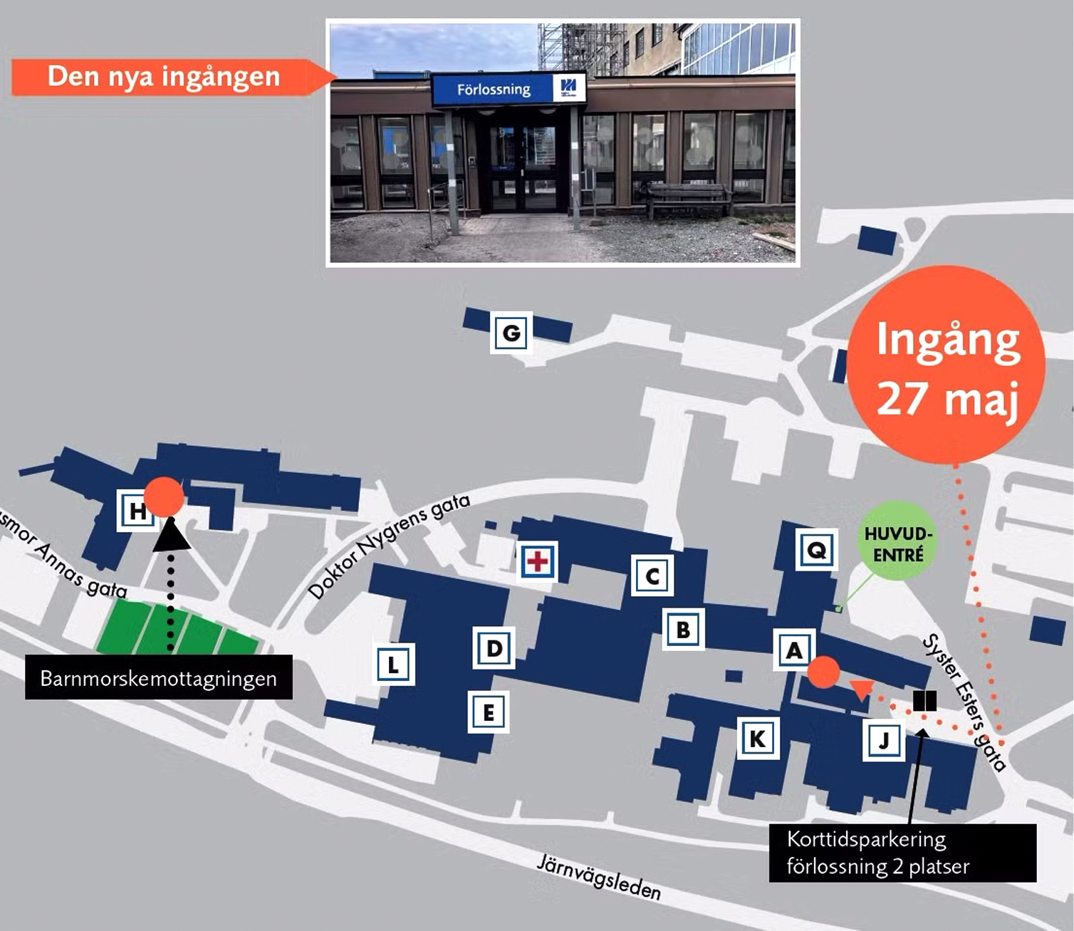 Kopplat till arbetet har förlossningen och intensivvårdsavdelning nu fått en annan ingång, med adressen Systers Esters gata 9 som ligger söder om den tidigare entrén. Det uppger Region Västerbotten och att ny skyltning har satts upp.