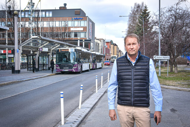 Robert Nyman, trafikchef på kommunen, i Skellefteå centrum under 2020. Foto: Jonas Nilsson