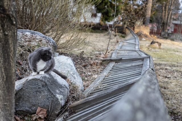 Grannen har föreslagit att jag borde elda upp den uppskattningsvis 40 meter långa längan som nu, i dess liggande form, utgör ett mycket klent skydd mot just grannar. Men det är k-märkt och jag ser ett värde i att bevara det. Ursprungligen byggdes det av Boliden för sisådär 85 år sedan och runt om här i Skelleftehamn syns likadana säregna (men alltså inte helt gedigna) staket. De är som fina. Det här kommer att bli dyrt och krångligt, för jag är verkligen inte människan som ska ägna mig åt hantverkarinsatser av den här kalibern. Det vore direkt kontraproduktivt. Men det är lugnt – det här är Framtids-Pers bekymmer.