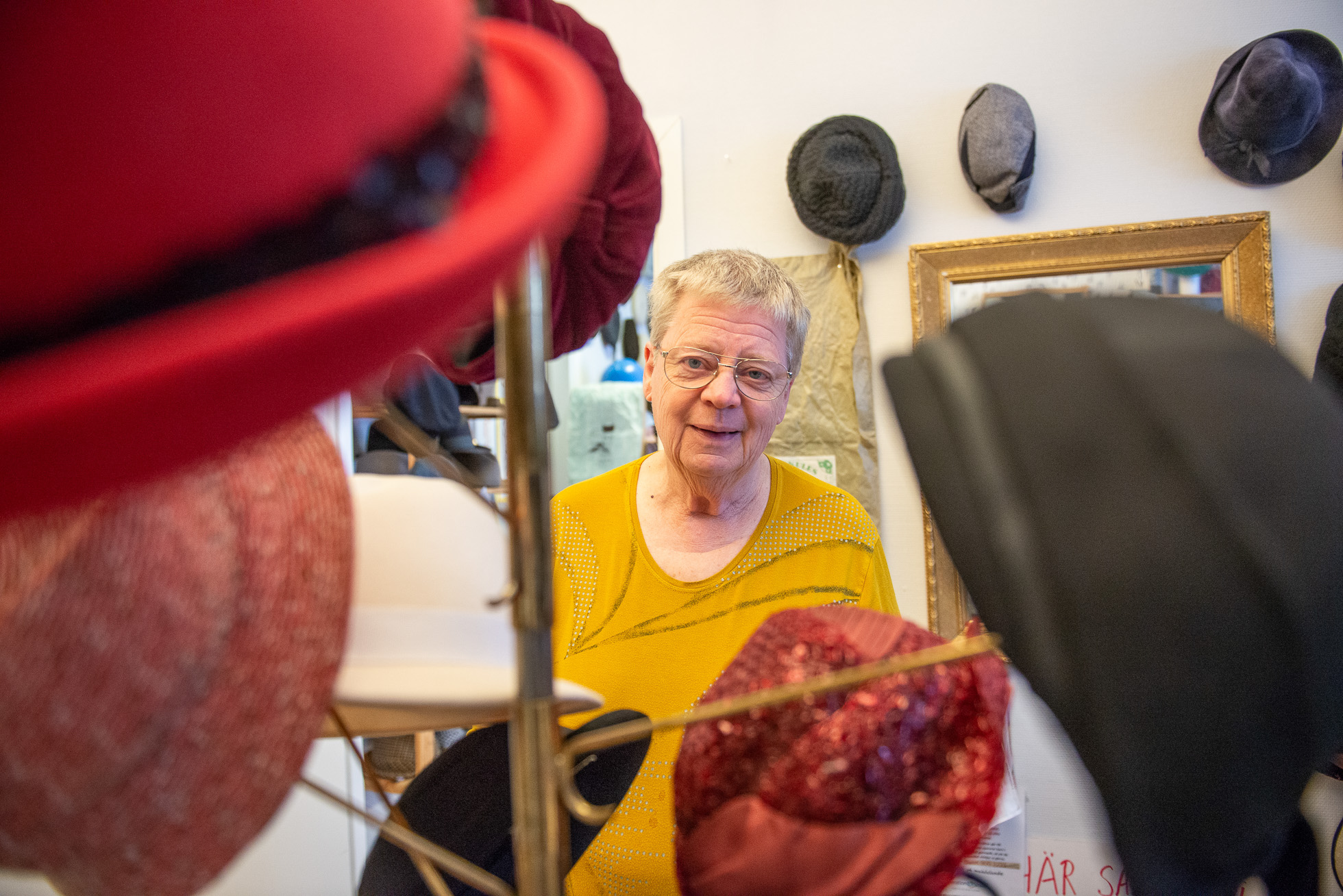 – Först måste man ånga upp råmaterialet kaplin och sedan trä det på hattstocken och låta det torka. Därefter får man sy brättet för sig, förklarar Pia för mig och trots att jag har svårt att greppa hela processen förstår jag att den kräver både övning, tålamod och kunnande.