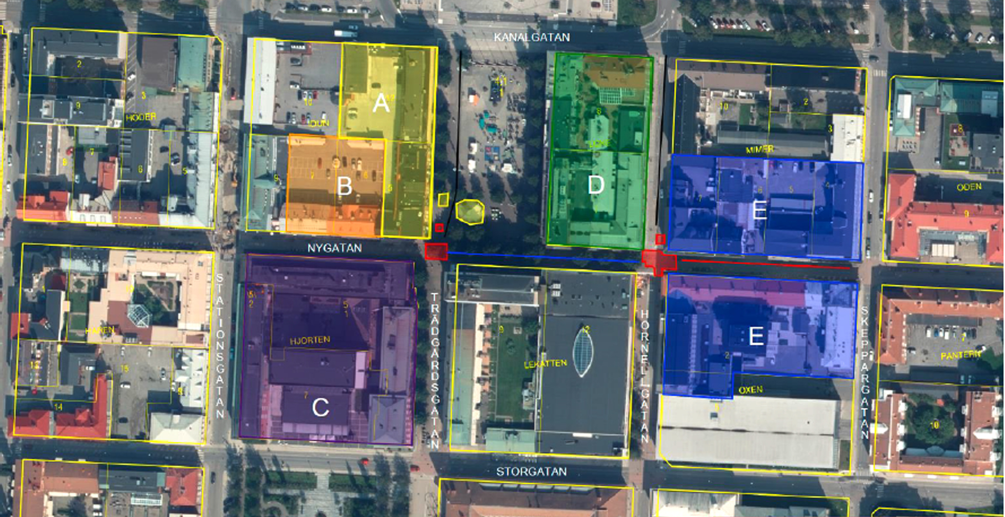 Arbetet gör att framkomligheten längs Nygatan, Hörnellgatan och Trädgårdsgatan kommer att begränsas för fordon, se röda markeringar på bilden. Enligt kommunen ska gående dock kunna passera.