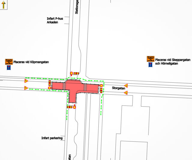 NYHETER Korsningen Storgatan/Stationsgatan i Skellefteå centrum kommer att hållas stängd för trafik under huvuddelen av arbetsveckan, informerar Skellefteå kommun.
