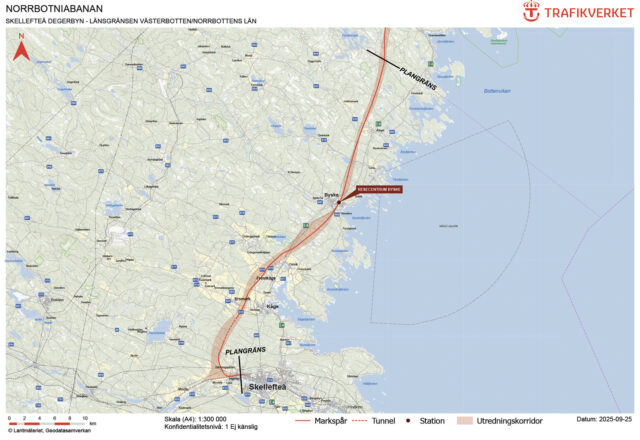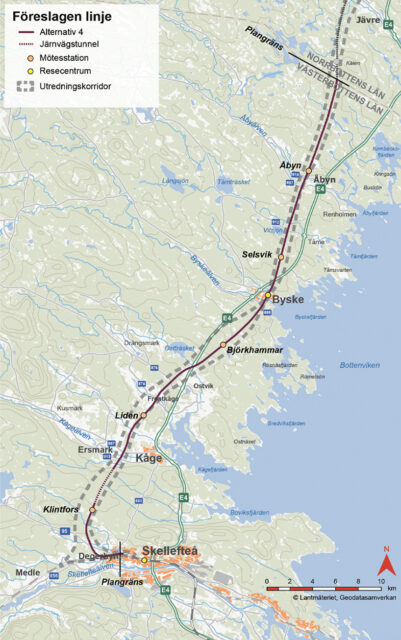 Den lösning som myndigheten landat i går norrut genom Ersmark, Frostkåge, Ostvik, Byske (där en tågstation planeras) och Åkroken, Åbyn, innan den når länsgränsen.