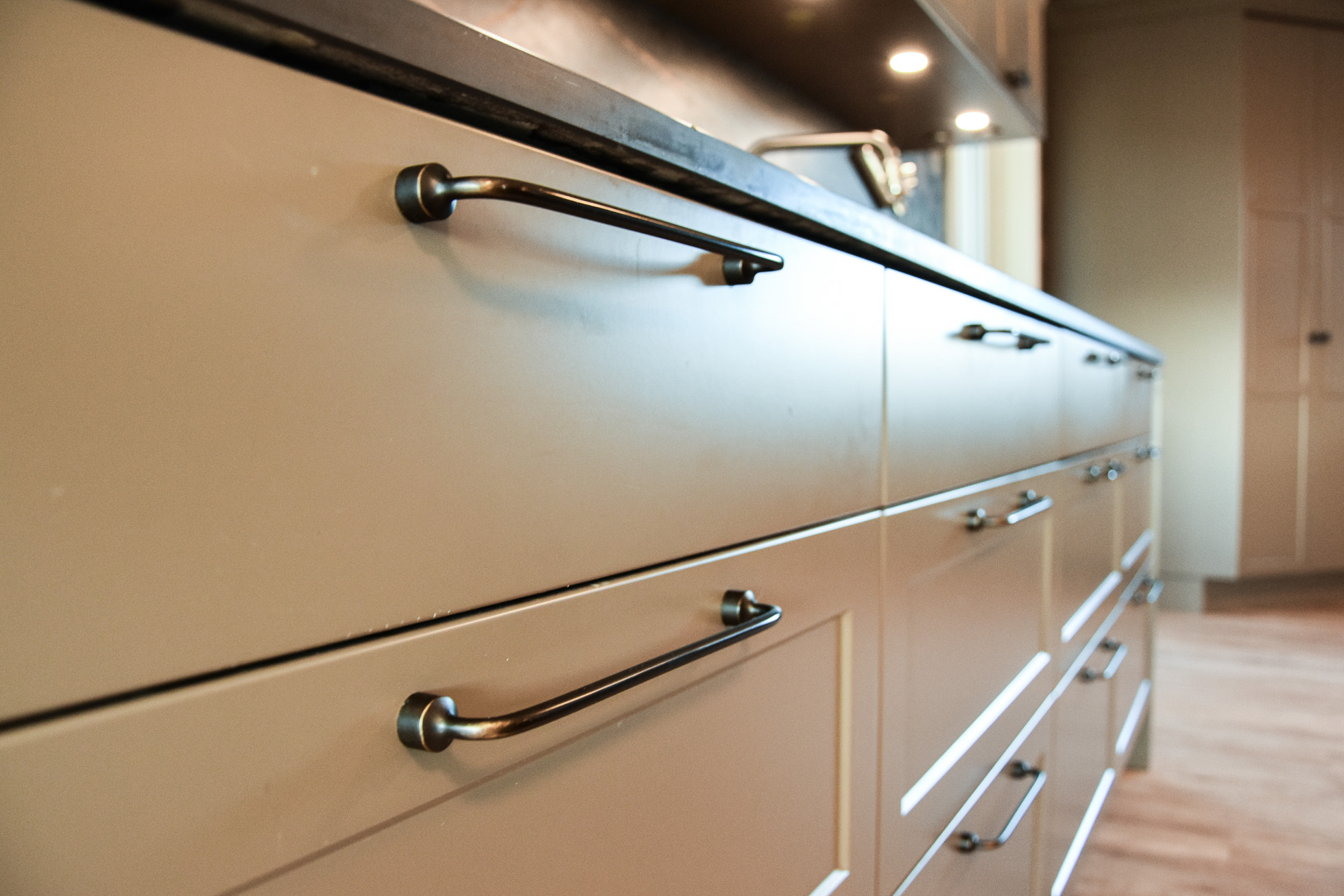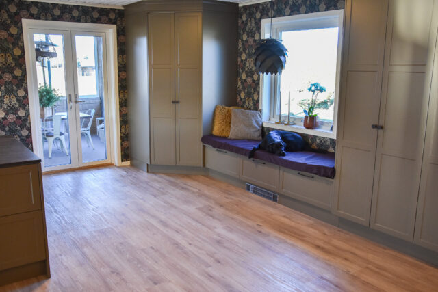 – Förut var det så slitet, och så litet. Vi hade inga överskåp så allting hamnade på bänkarna och det var verkligen mörkt, så vi sade “in med ljuset” och ville få fler lådor att stoppa bort allting i, berättar Jeanette.
