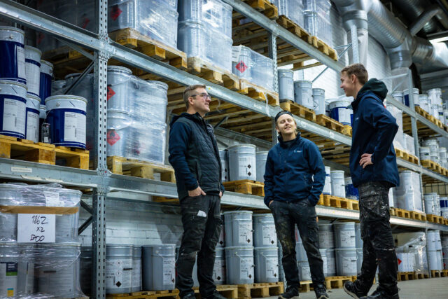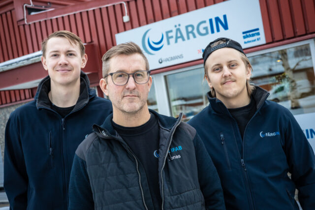 Trots att FärgIn ingår i en större koncern drivs enheten i Skellefteå lite som ett familjeföretag. Jonas och Casper är far och son, men här arbetar även dottern Frida Hedlund. Det är bara Elliot Grenholm som saknar släktskap. Engagemanget märksoavsett. De har själva renoverat stora delar av lokalen, målat golv och väggar, slipat och byggt kontor.