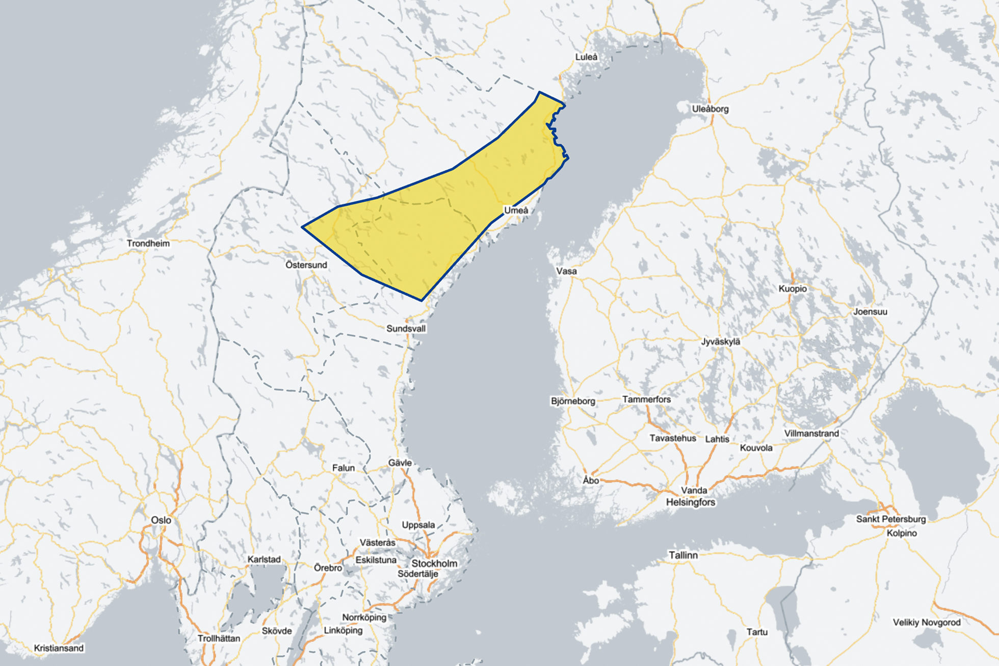SMHI har utfärdat en gul varning för plötslig ishalka som gäller mellan klockan 09.00 och 21.00 på tisdagen. Det är delar av Västerbottens, Västernorrlands och Jämtlands län som berörs, se bild.