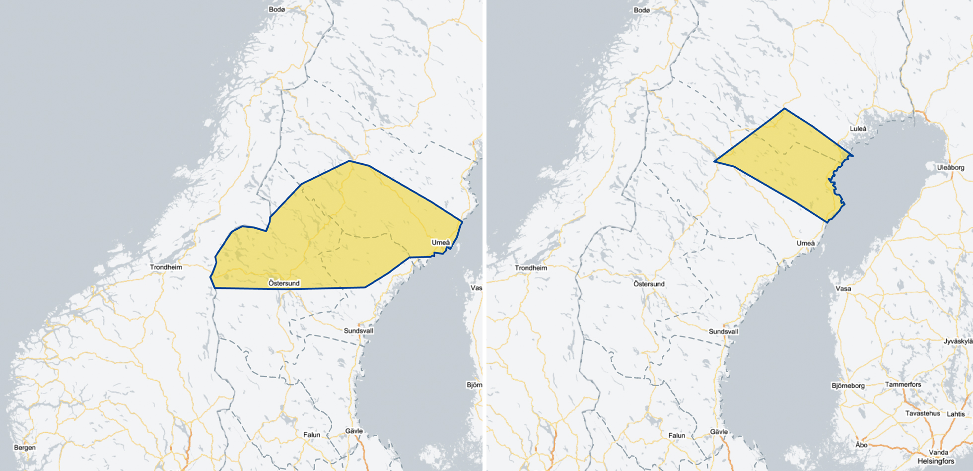 SMHI har utfärdat två gula varningar för plötslig ishalka på tisdagen – en som gäller södra halvan av Västerbotten samt delar av Jämtlands och Västernorrlands län mellan klockan 03.00 och 12.00, och en som gäller norra halvan och södra Norrbotten från klockan 10.00 till 20.00.