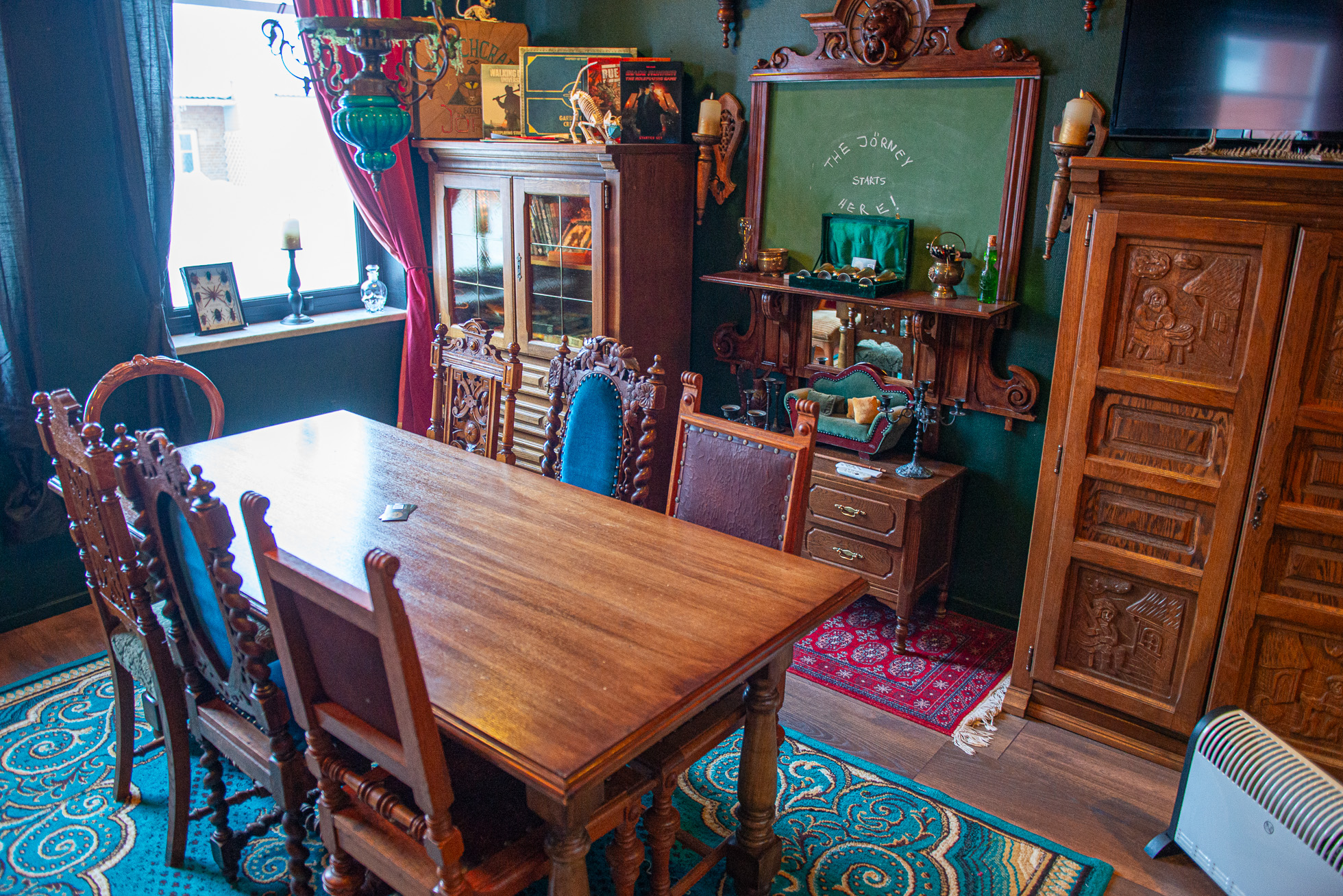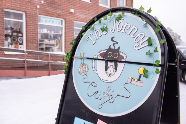 När man kliver in på The Jörney på Storgatan kommer alla ens fördomar om kaféer på landsbygden helt på skam. Den klara men mättade blå och svarta färgen på väggarna, möblerna och inredningen från 1900-talets första halva och träinslagen samsas med populärkulturella inredningsdetaljer på ett sätt som närmast för tankarna till ett kafé i någon storstad. Det är svårt att tro att lokalen vi befinner under många år huserade en bank.