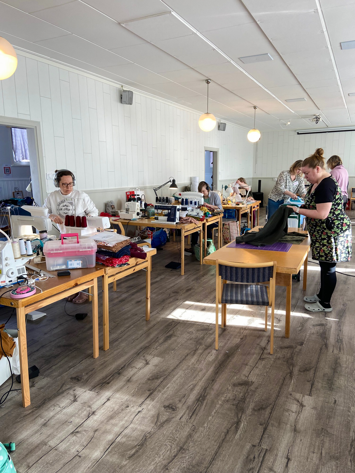 • Bild från tidigare år. Monica Öhman som är en av initiativtagarna berättar att "vissa kan sitta uppe och sy till 2 eller 3 på morgonen medan andra är uppe redan vid 5 eller 6". Foto: Privat