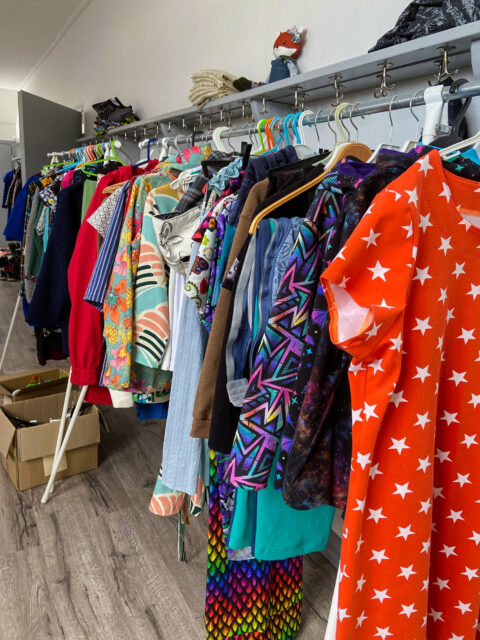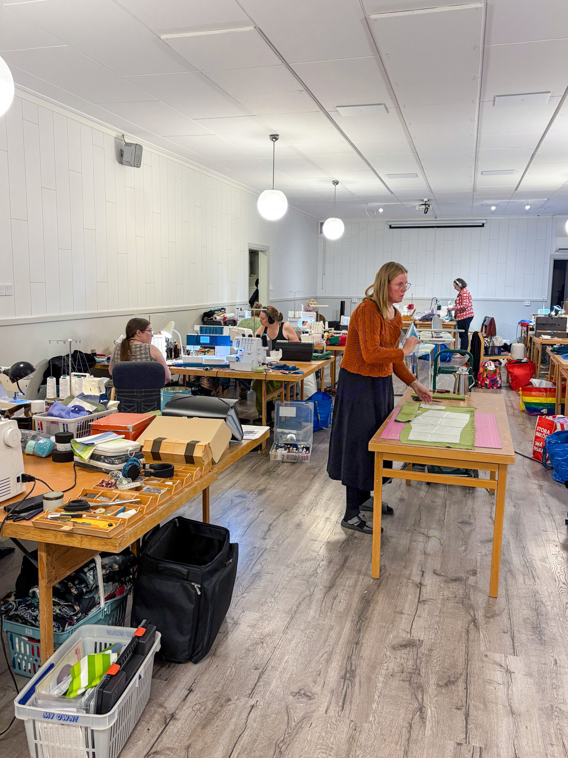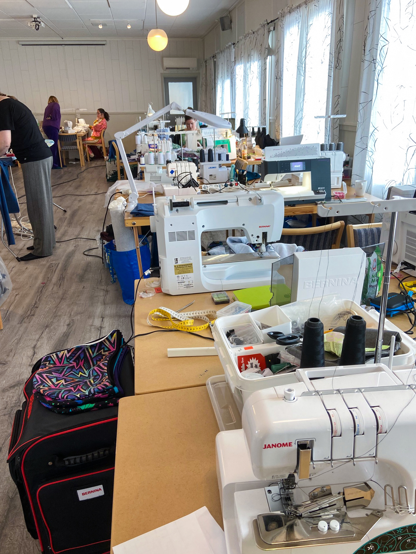 – Alla har med sig egna symaskiner, sybehör och material medan vi håller med strykbrädor och liknande. Sedan syr vi precis det vi vill. Det är en jättefin social gemenskap där vi brukar säga ”familjen är här” när vi inleder helgen, säger Monica.