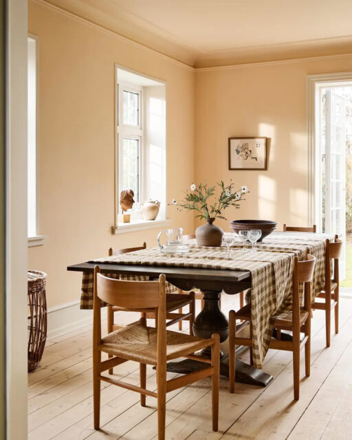 – Sedan är det dags att göra ett färgschema för alla rum. Vilka kulörer finns på väggar, gardiner och golv och vilka vill du ha framöver. Titta på hur rummen angränsar varandra och se till att kulörerna fungerar tillsammans. Tänker du dig en tapet är det ju tacksamt att ta ut kulörer ur den och använda till textilier till exempel. Man behöver inga komplicerade program till detta, PowerPoint eller Canva fungerar fint. Man kan också hämta kulörprover från en färgbutik och klistra på ett stort papper för överblick, säger Linda.