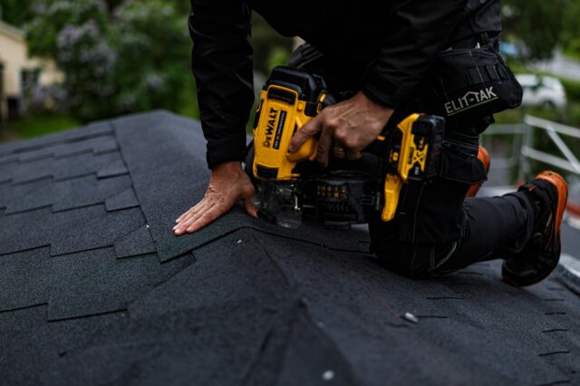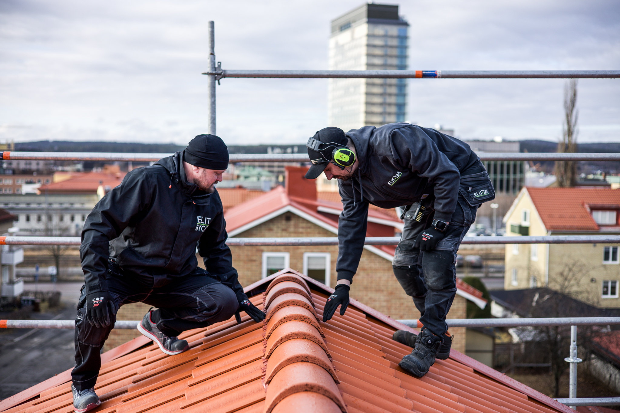 Verksamheten fortsatte att växa och 2022 bildades en koncern och fler lokala servicebolag etablerades, var och en med egna team. Dessa arbetar inom fastighets- och industriservice, byggservice samt – som senaste tillskott – ställningsentreprenad. I dag består ELIT-TAK av åtta montörer som arbetar renodlat med takomläggningar och tillhörande arbeten. En viktig del i företagets styrka är just personalen. Tre av montörerna kommer från Ukraina, något Marcus lyfter fram som en stor tillgång.