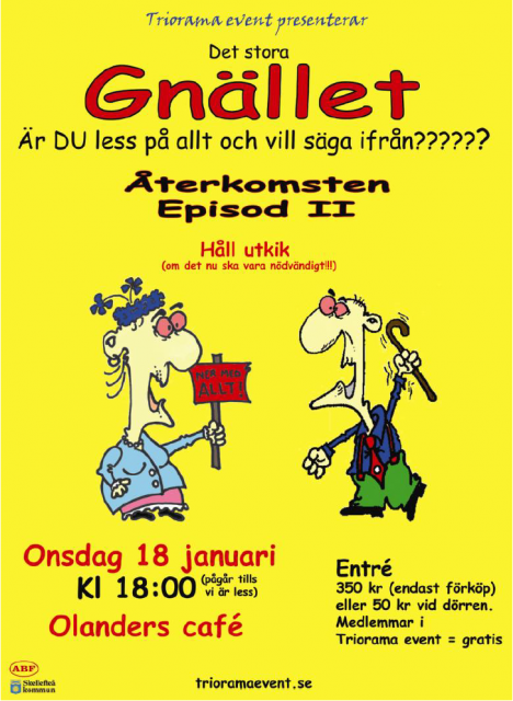 Det stora Gnället Episod II Återkomsten äger rum onsdag 18 januari på Olanders café.