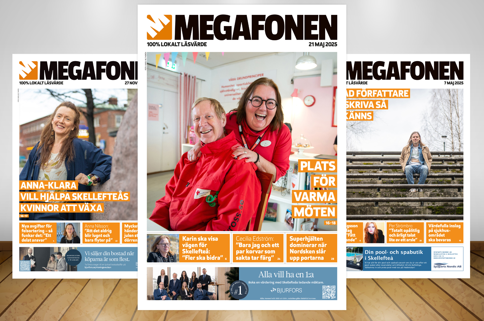 Gratistidningen Megafonen delas månadsvis ut till hushåll och företag i Skellefteå kommun. Här nedan kan du bläddra i alla tidigare tidningar.