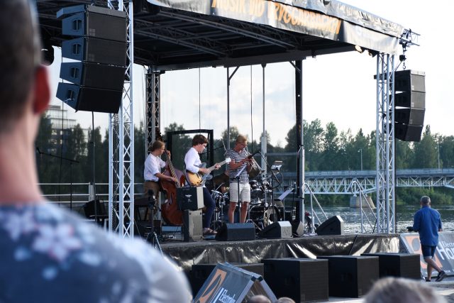 Vimmelbilder från Musik vid Bryggarbacken i Skellefteå med Peter Fjällström och Bergner/Holmström trio som huvudartist och Hällgren/Holmström/Löfgren som supportakt den 23 juli 2019.